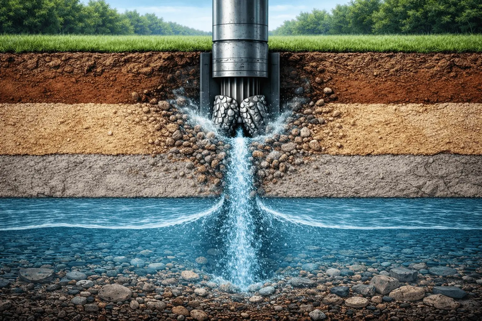 Água subterrânea com excelente qualidade. Com análises periódicas, seu poço pode fornecer água potável com mínimo de tratamento.